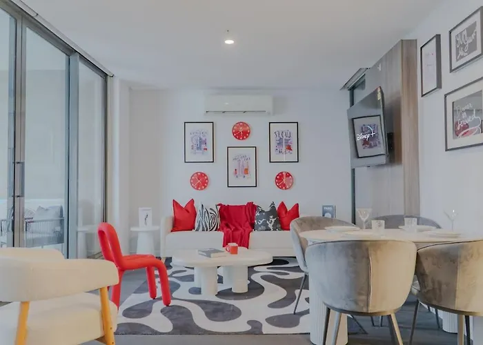 Disfruta de tus vacaciones en Melburne en el apartamento Spacious 2B2B - City Central Gym Pool Spencer St Melburne. Ideal para quienes buscan una experiencia auténtica, está situado a unos 1 km del Paseo Southbank y a 20 minutos a pie del Río Yarra. En el apartamento, situado a un corto paseo del Estadio Marvel, los huéspedes pueden disfrutar de sauna y una piscina cubierta.